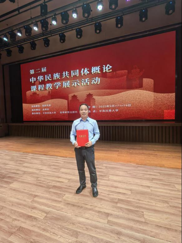 9月17日至19日,第二届《中华民族共同体概论》课程教学展示活动在中南民族大学成功举办。经视频展示、专家评审等环节的激烈角逐,马克思主义学院教师张建军从全国525所高校767名参赛教师中脱颖而出,进入决赛现场展示环节(普通高校组72人,高职院校组32人),获普通高校组优秀奖。