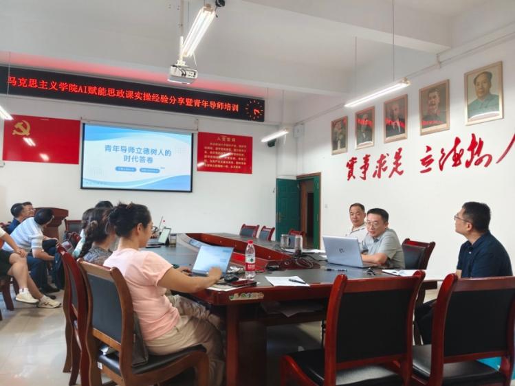 为积极应对人工智能时代的教育变革,推动思政课教学改革创新,提升青年教师育人能力,10月10日下午,马克思主义学院在南岸校区二教20218会议室,成功举办“AI赋能思政课实操经验分享暨青年导师培训”集中教研活动。活动由学院副院长张建军主持,全体教师参会。