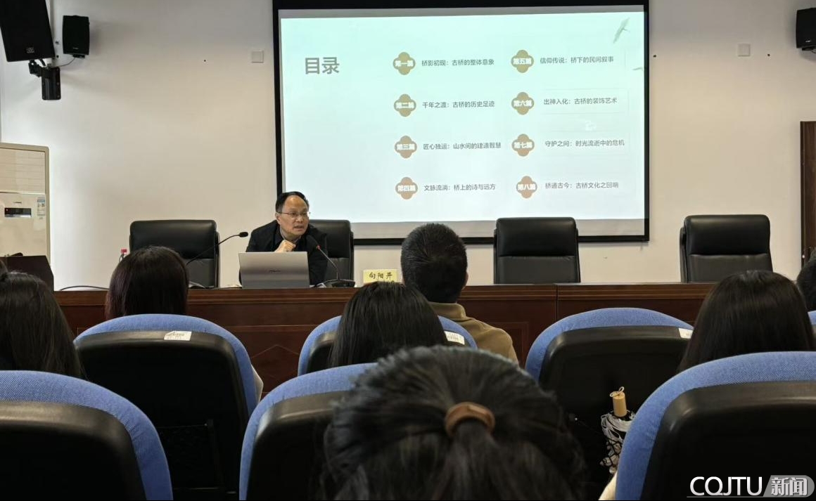 2025年11月10日,重庆市人文社会科学重点研究基地“交通文化研究中心”,邀请了我校古桥研究专家向阳开教授以“卧波千年:重庆古桥的文化回响”为主题开展讲座,讲座由马克思主义学院院长、交通文化研究中心主任张晓平教授主持,中心研究员及马克思主义理论专业研究生等80余人参加。