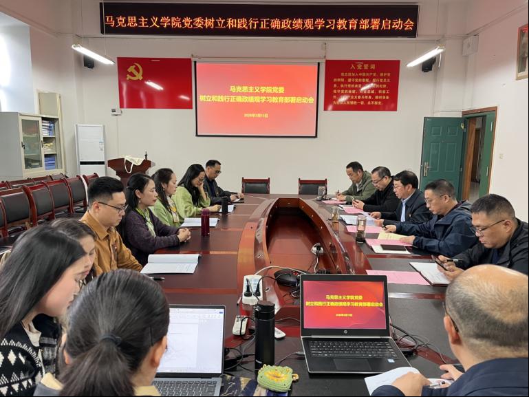 3月13日下午,马克思主义学院党委在南岸校区第二教学楼20218会议室召开树立和践行正确政绩观学习教育部署启动会。会议由学院党委副书记、院长张晓平主持,学院全体党委委员及各党支部书记参加。