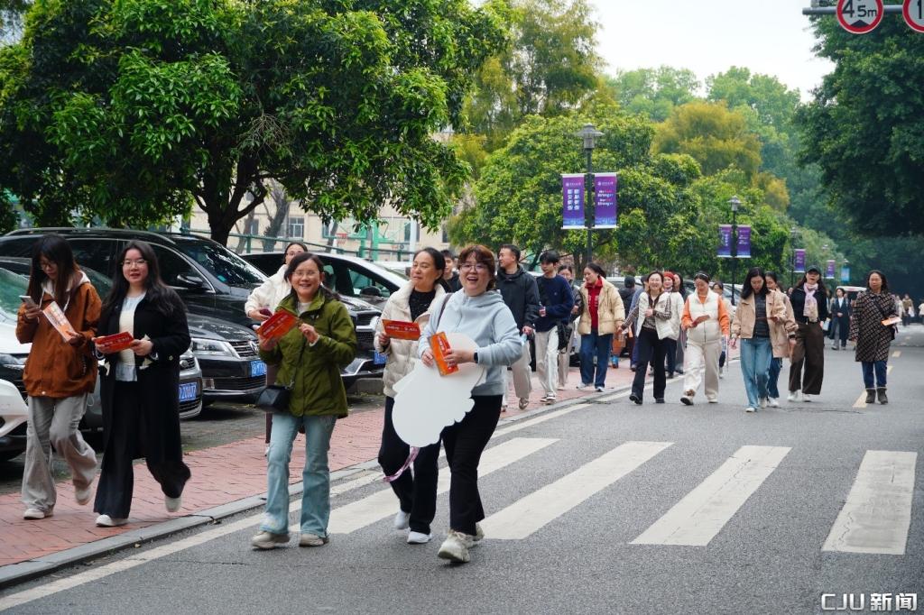 春风送暖,芳华尽展;桃李争妍,巾帼当先。3月20日14时,重庆交通大学2026“巾帼情·交大行”女教职工环校健步走活动在南岸校区举行,我院女教职工手持主题手卡,热情参与。