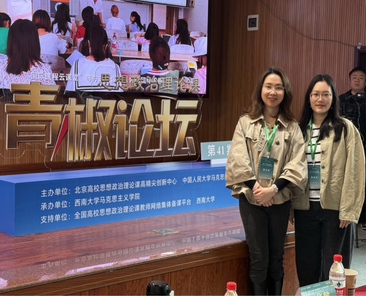2026年4月3日,由北京高校思想政治理论课高精尖创新中心、中国人民大学马克思主义学院主办,西南大学马克思主义学院承办的第41期思想政治理论课"青椒论坛"在西南大学举行。本次论坛以“党的二十届四中全会精神暨国家‘十五五’规划融入思政课”为核心主题,我院选派甘溦、刘佳馨两位青年教师参会,与全国各地高校优秀思政课教师齐聚一堂,共研教学、互学互鉴。