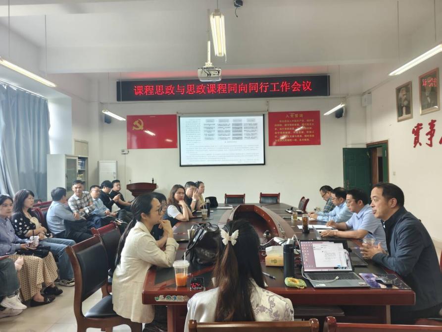 为深入落实本科教育教学审核评估整改要求,扎实推进思政课程与课程思政协同育人、同向同行,2026年4月10日下午,马克思主义学院在南岸校区二教218会议室召开“课程思政与思政课程同向同行”专题工作会议。学院党委书记吴成国、院长张晓平、纪委书记吴宗元,同向同行各工作组组长、联络员及全体教师参会,会议由副院长张建军主持。