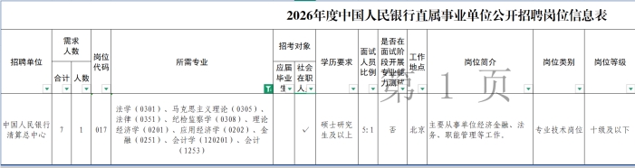 考试包括笔试和面试,部分岗位还将在面试阶段一并开展专业能力测试(详见《2026年度中国人民银行直属事业单位公开招聘岗位信息表》)。