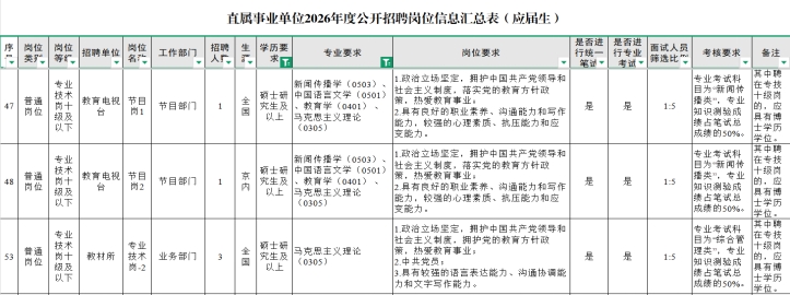 三、教育部直属事业单位2026年度面向应届毕业生统一招聘