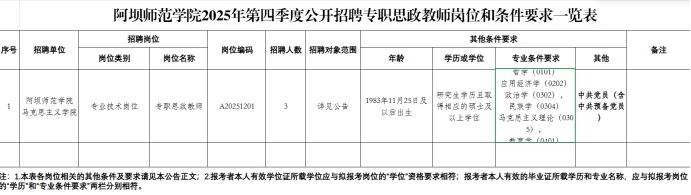 四、阿坝师范学院2025年第四季度编制内公开公开考核招聘专职思政教师公告