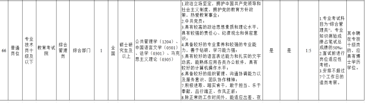 笔试地点为北京、上海、郑州(笔试具体时间和考场具体地址请见准考证),题型包括主观题、客观题,主要测试报考人员政策理论水平、分析解决问题能力等综合素质。考试时长120分钟,满分100分,合格分数线60分。
