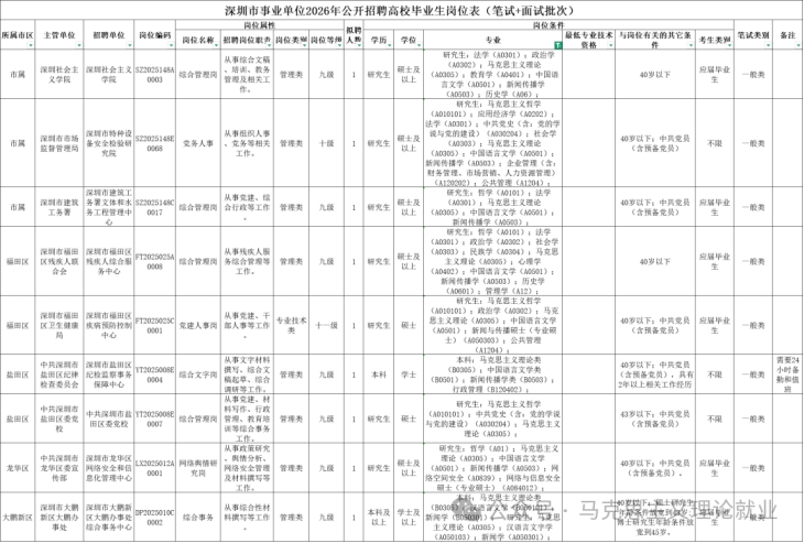 三、深圳市事业单位2026年集中公开招聘高校毕业生公告