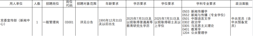 本公告中有关政策口径由各招聘单位主管部门负责解释。《岗位表》中所列内容,由招聘单位负责解释。