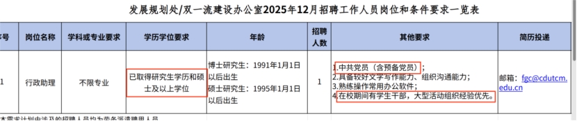 三、成都中医药大学发展规划处/“双一流”建设办公室2025年12月招聘行政助理的公告