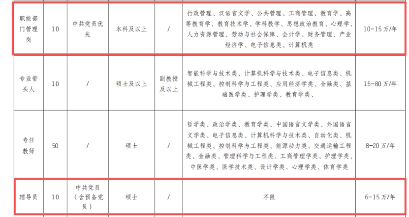 (3)行政、辅导员、西部集成电路与工业软件创新港岗位:重点考察综合能力、岗位匹配度、解决问题能力等;