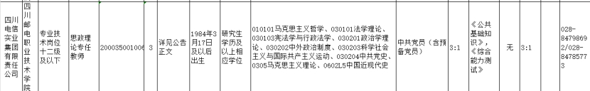 七、四川电信实业集团有限责任公司下属事业单位2026年上半年公开招聘工作人员岗位