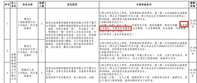 四、成都环境投资集团有限公司2026年春季“蓉漂人才荟”校园招聘公告