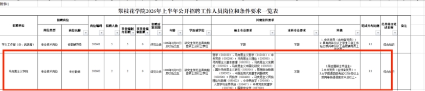 一、攀枝花学院2026年上半年公开招聘工作人员公告