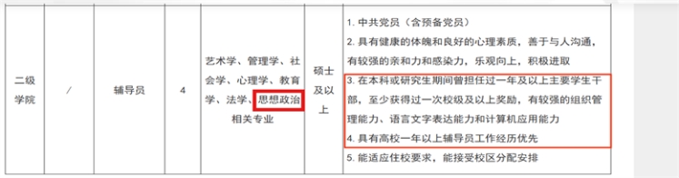 2.本科学历者具有教学工作经验,教学业绩优异者优先;研究生学历者,第一学历应为国内外知名大学。