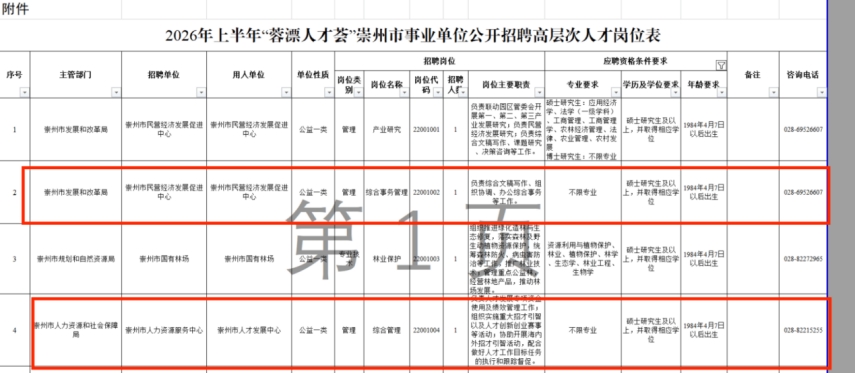 二、2026年上半年“蓉漂人才荟”崇州市事业单位公开考核招聘高层次人才公告