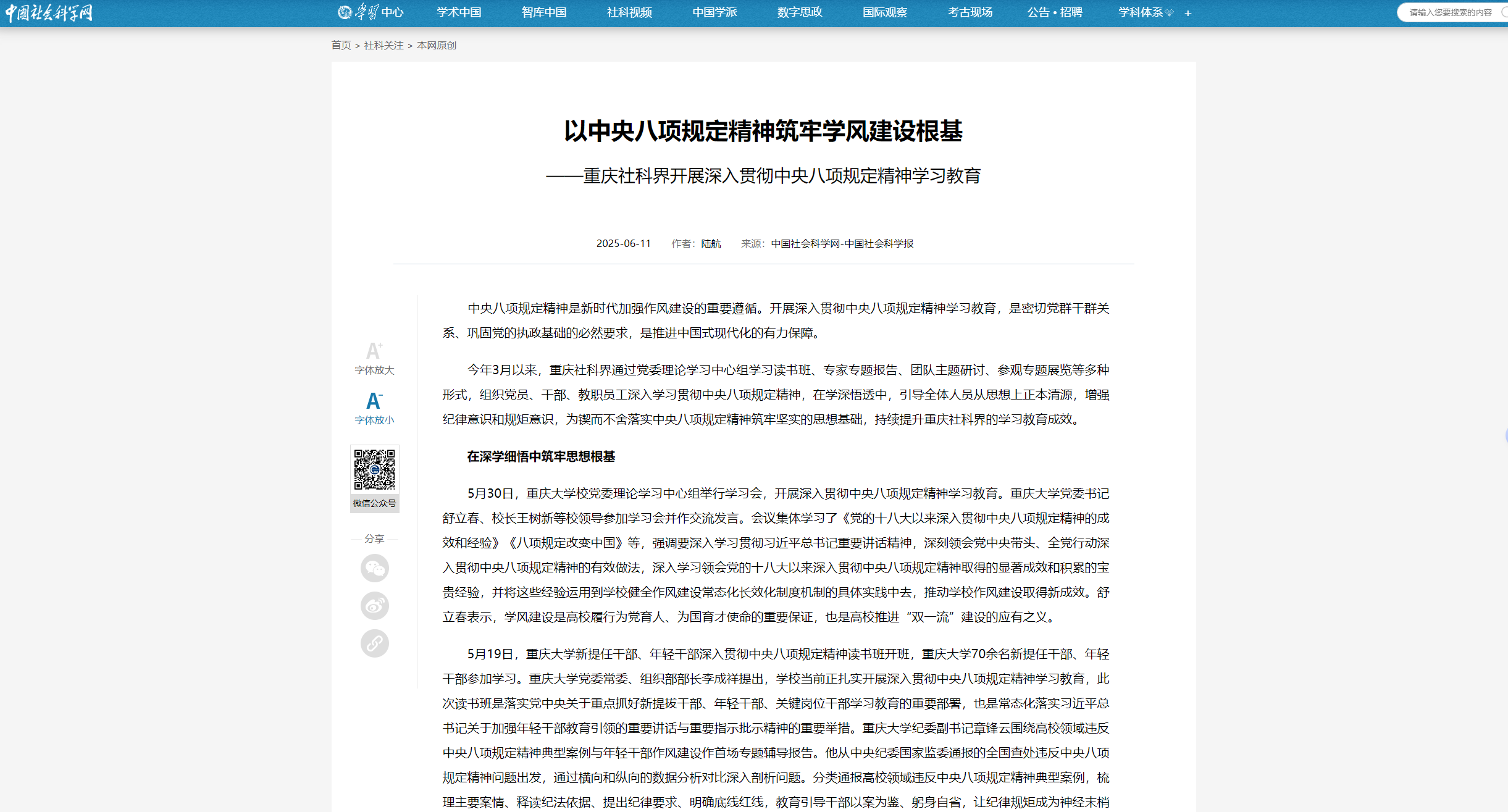 以中央八项规定精神筑牢学风建设根基——重庆社科界开展深入贯彻中央八项规定精神学习教育