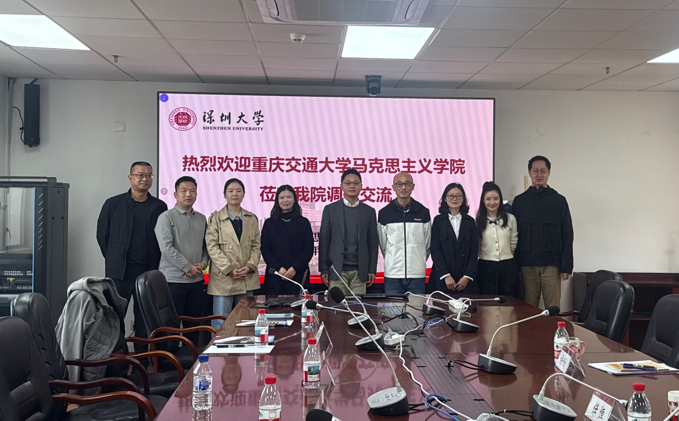 11月28日,我院教师一行前往深圳大学马克思主义学院交流调研。深圳大学马克思主义学院任恒副院长、许畅老师、和杰老师出席座谈会。任恒副院长详细介绍了深圳大学马克思主义学院的师资力量、学术研究、学科建设、AI赋能课程建设、机构设置等情况。据悉,深圳大学马克思主义学院是广东省首批重点马克思主义学院,拥有一门国家一流本科课程,并拥有全国首家高校思想政治理论课情景模拟实验教学中心。许畅老师分享了《马克思主义基本原理》课程教学的特色经验,强调案例教学需主题鲜明,精准对接教学大纲或教材中的重点、难点、疑点问题。和杰老师介绍了《毛泽东思想和中国特色社会主义理论体系概论》的教学特色,提出课堂互动应具有启发性,通过精准设问引导学生理清思路、发现问题、分析原因并深化理论思考。我院哲学教研室邓云晓教授就《马克思主义基本原理》教学中的实际问题与对方展开深入交流。马克思主义中国化教研室主任王玉龙博士介绍了我院《毛泽东思想和中国特色社会主义理论体系概论》教学运行的基本情况,并就相关教学实践与研究进行交流。